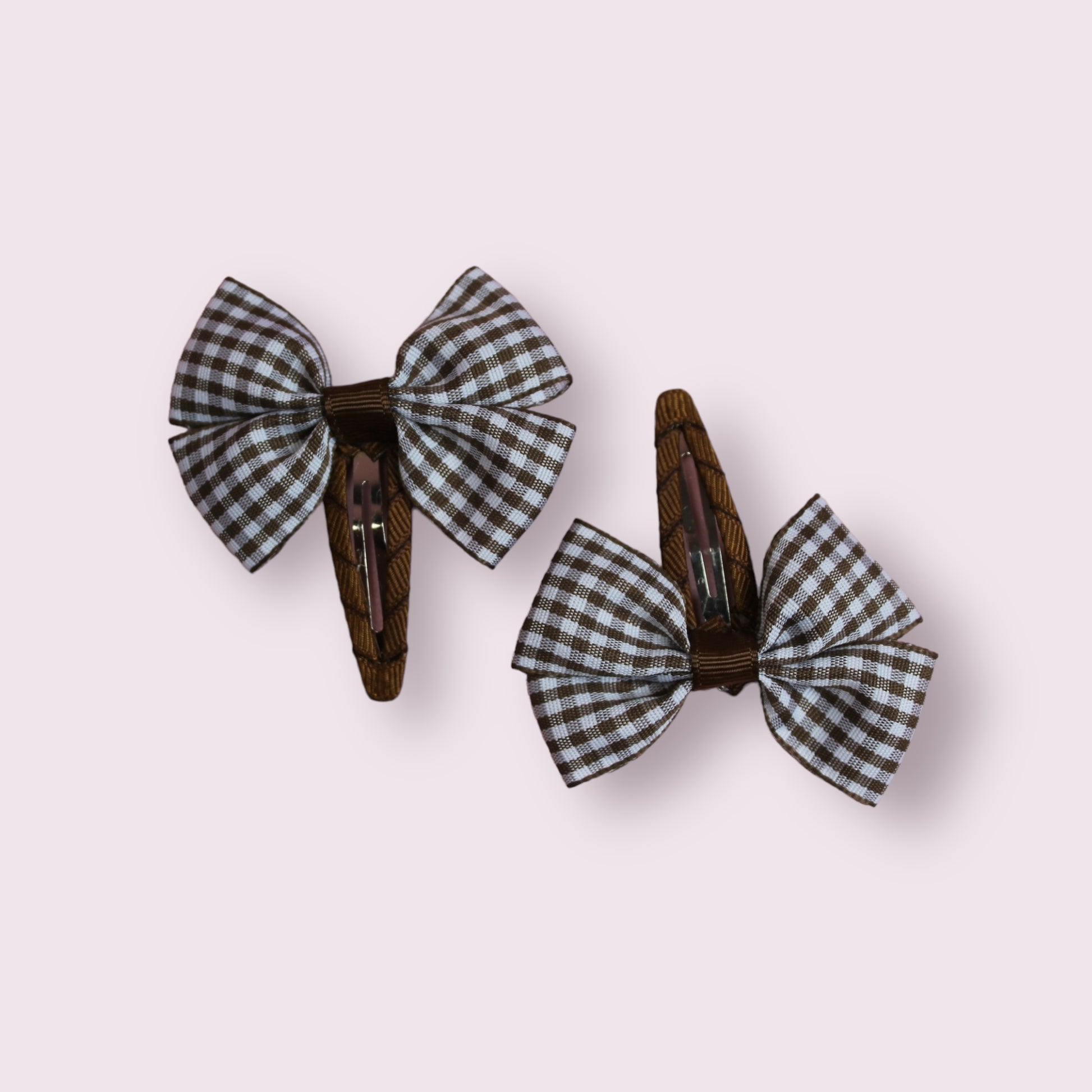 Brown Gingham Butterfly Snap Clip Grosgrain Ribbon 2.5 inches - Pack of 2