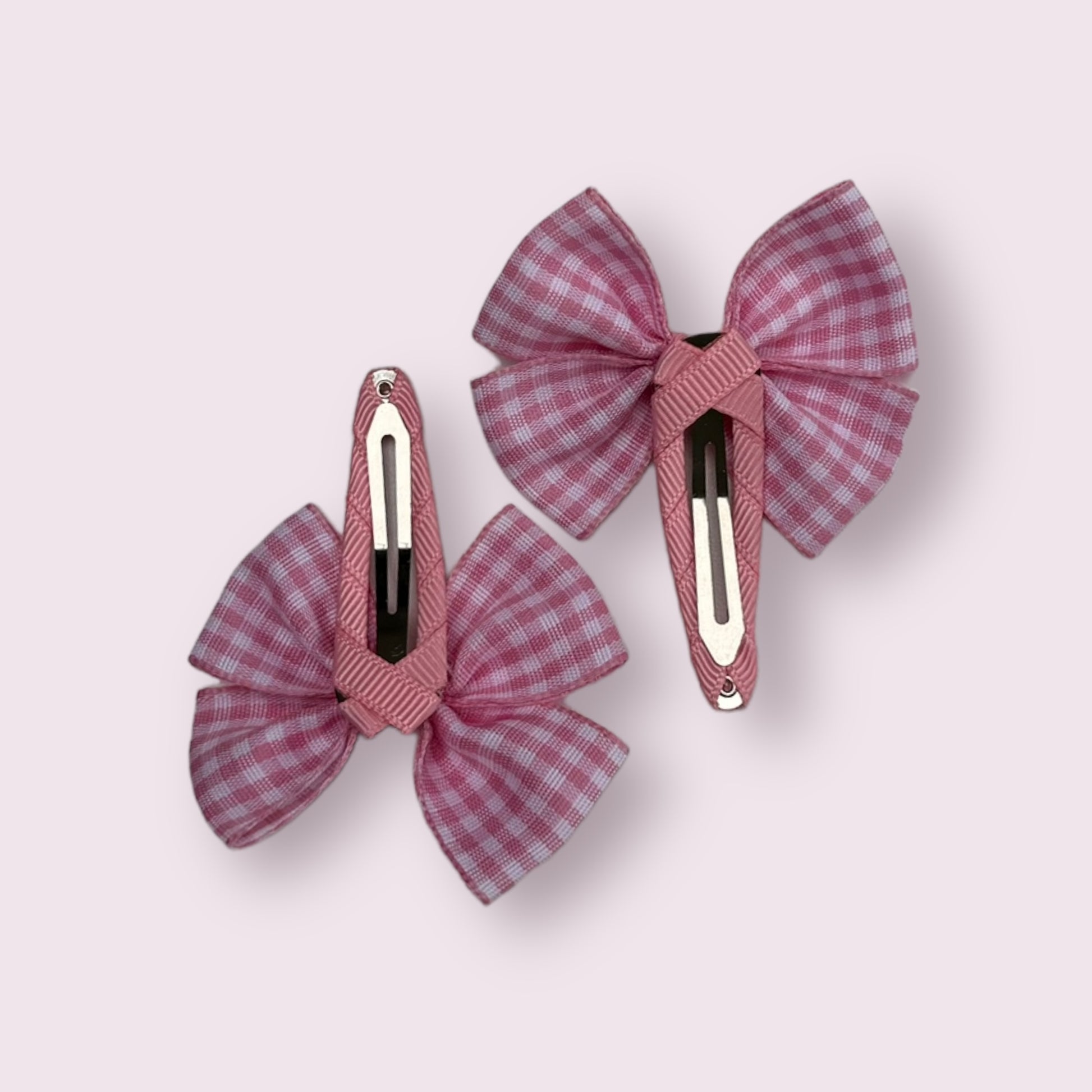 Pink Gingham 2.5" Butterfly Snap Clips