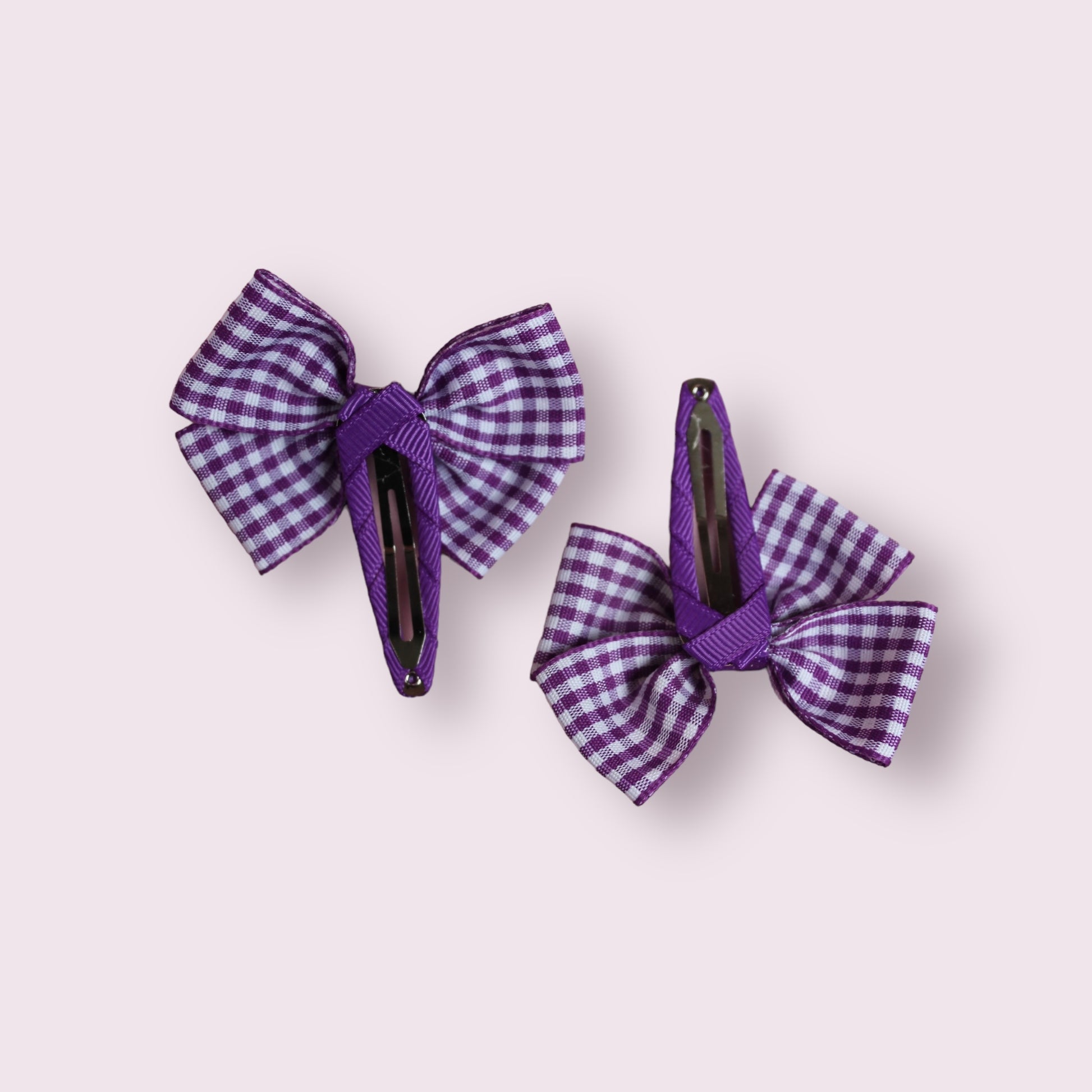 Purple Gingham Butterfly Snap Clip Grosgrain Ribbon 2.5 inches - Pack of 2