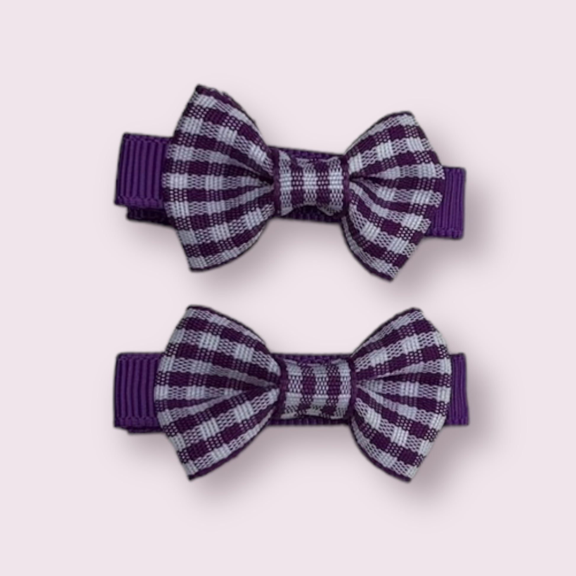 Purple Gingham Mini Bowtie clips 1.75" Pack of 2