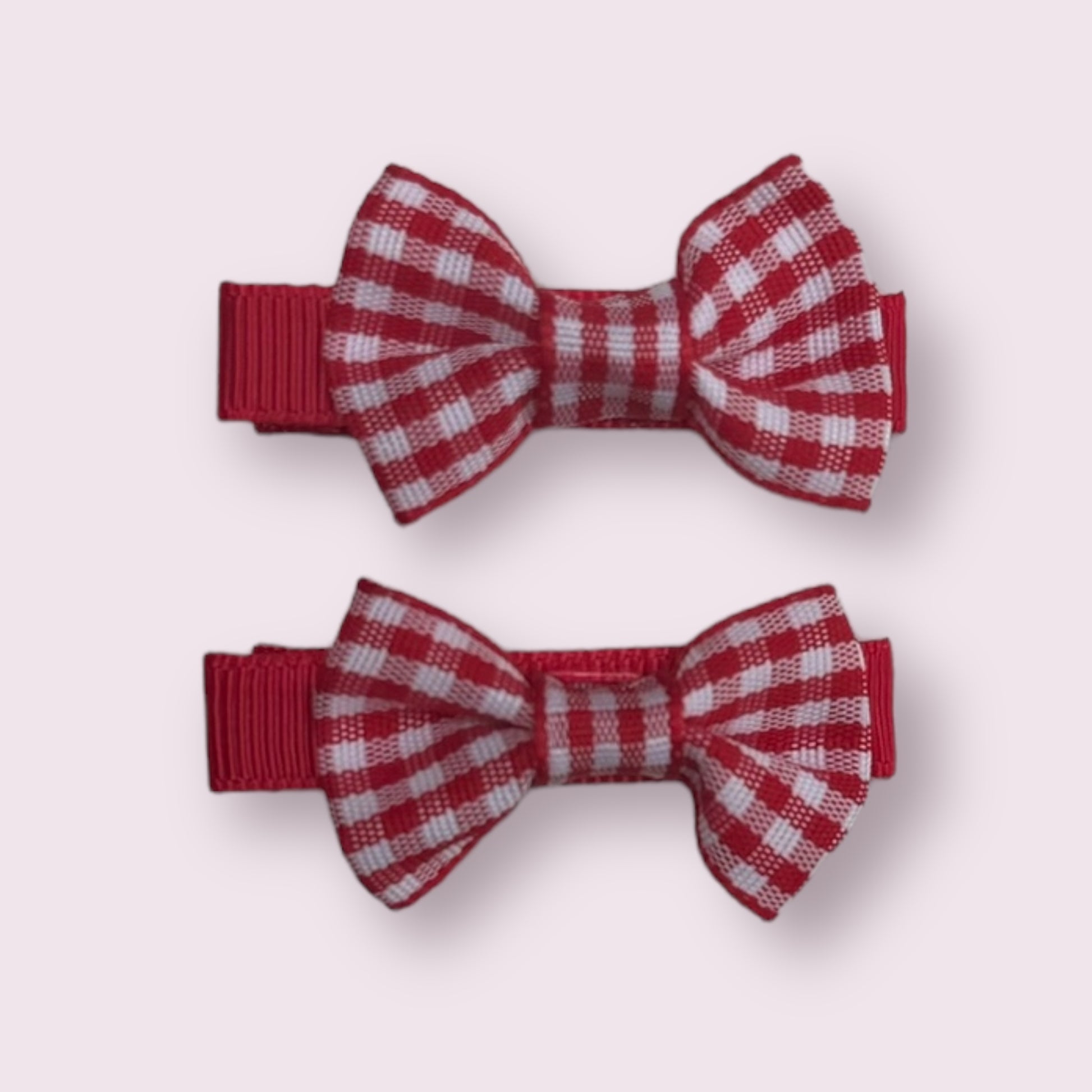 Red Gingham Mini Bowtie clips 1.75" Pack of 2